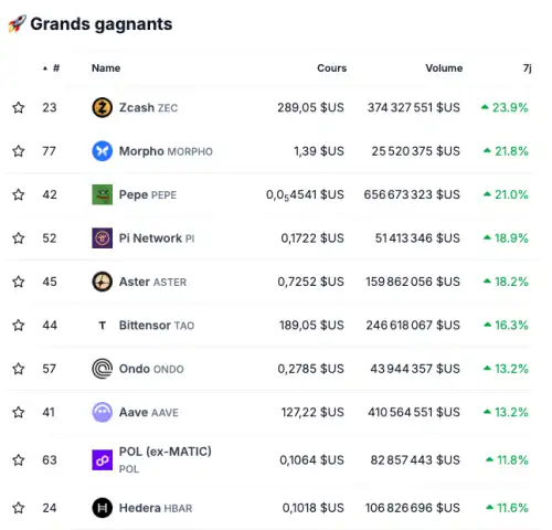 Найкращі криптовалюти зі списку топ-100 за останній тиждень. Джерело: CoinGecko