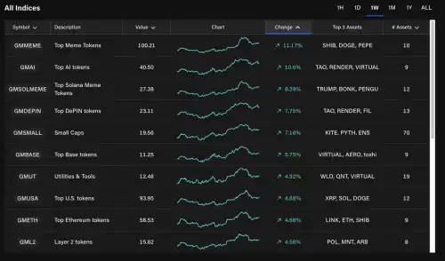 На вершині рейтингу ефективності знаходяться мемкоїни (+11,2%) та штучний інтелект (+10,6%) . Хоча зростання обмежене, стійкість альткойнів заслуговує на увагу. З огляду на цю силу, альткойни можуть прискорити своє зростання, якщо біткойн відновиться.