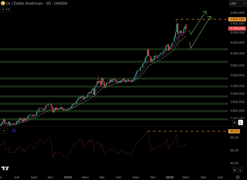 Ціна золота відносно долара (3D) – Зареєструйтесь у TradingView, використовуючи наше партнерське посилання.