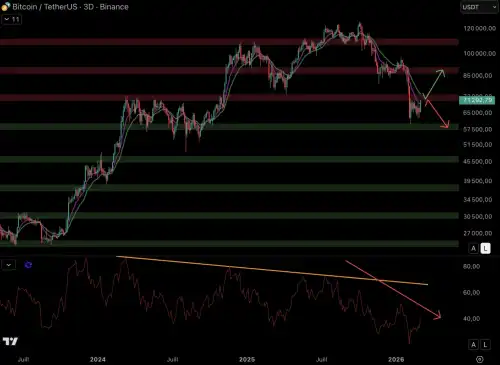 Біткойн перебуває у складній зоні: низхідні ковзні середні та опір на рівні $73 000