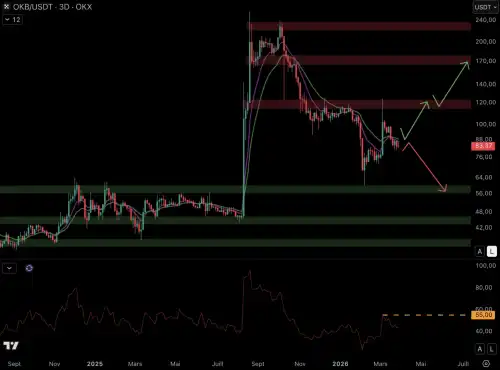 Ціна OKB відносно долара (3D) – Зареєструйтесь у TradingView, використовуючи наше партнерське посилання.