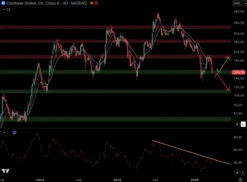 Таким чином, COIN повернувся до рівня підтримки $160 . Ця підтримка дозволила відскочити з 2024 року, і поновлена реакція покупців може призвести до зростання до $210 . Однак прорив нижче цієї підтримки може мати катастрофічні наслідки. Дійсно, падіння нижче $160 може спровокувати повернення до рівня $115 .