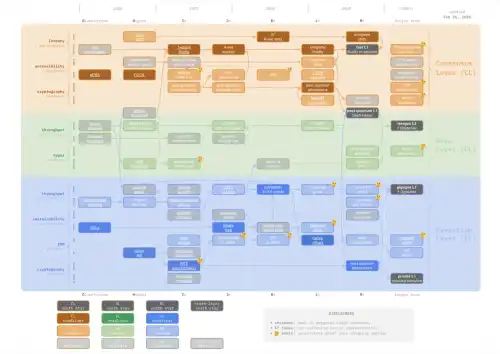 При цьому він організовує сім форків (основних оновлень протоколу) з інтервалом приблизно шість місяців, структурованих у три рівні: