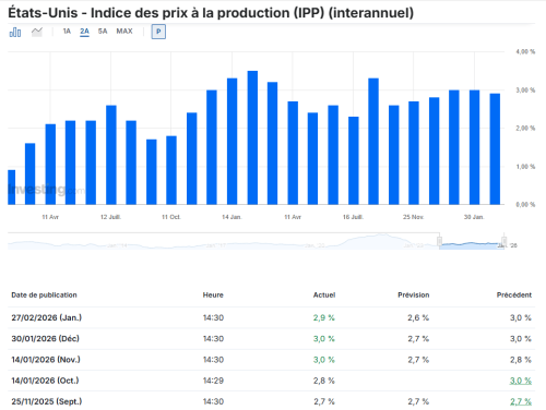 У п'ятницю, 27 лютого 2026 року, індекс цін виробників ( ІЦВ ), опублікований Бюро статистики праці США (BLS), показав незначне зниження з 3% до 2,9% у річному обчисленні. Однак це було менш вираженим, ніж очікувалося , оскільки учасники ринку очікували зниження на 2,6% .