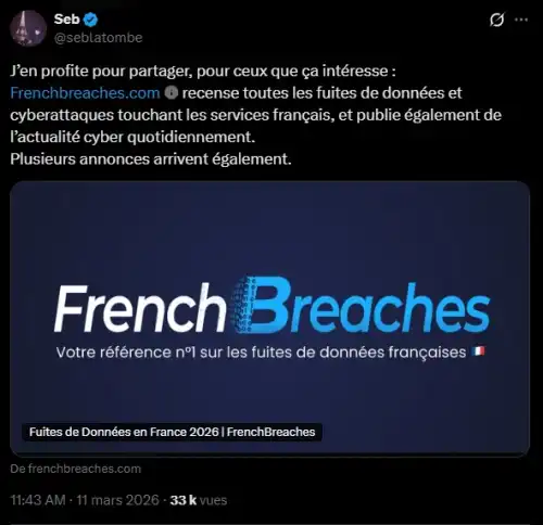 Засновник вебсайту FrenchBreaches ділиться своєю роботою в соціальних мережах – Джерело: Account X