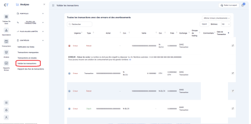 • Перевірити транзакції: відображає всі транзакції, які можуть містити помилки.