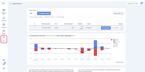 Навіть якщо ви француз, платформа ще не може заповнити вашу податкову декларацію, вона надає вам багато необхідних інструментів для повного спокою. Вона дозволяє застосовувати та порівнювати різні методи розрахунку, пропонуючи ширше уявлення про ваш приріст капіталу. Ви зберігаєте остаточний контроль, будучи повністю оснащеними та керованими .