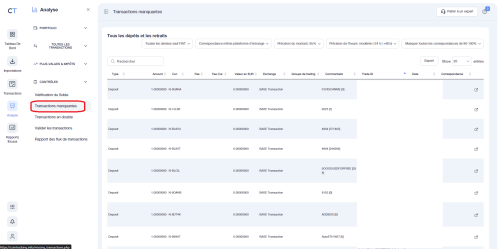 • Відсутність транзакцій: Однією з основних причин неправильних балансів є відсутність транзакцій або неправильний імпорт транзакцій. Це меню дозволяє шукати відповідні перекази (депозити та зняття коштів) та вказує на ймовірність збігу.