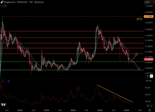 Dogecoin (DOGE) повинен реагувати, щоб уникнути загрози довгостроковому висхідному тренду