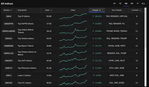 Нарешті, справжнє відновлення: десять секторів зросли більш ніж на 10%, а трьом вдалося отримати приріст понад 20% . Сектор штучного інтелекту (ШІ) був найсильнішим за останні сім днів (+30%), але інші також виділялися. Дійсно, сектор DePIN зріс на 25% , а мемкоїни піднялися приблизно на 17% .