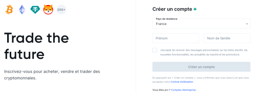 Щоб почати користуватися Bitvavo , вам потрібно створити обліковий запис . Перейдіть на веб-сайт і натисніть синю кнопку «Зареєструватися» у верхньому правому куті. Ви можете змінити мову, якщо віддаєте перевагу французькій.