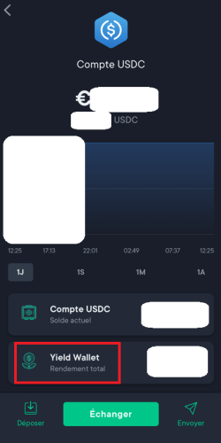 Якщо ви не плануєте використовувати свої USDC одразу, Swissborg пропонує можливість розмістити їх у гаманці з прибутковістю . Просто перейдіть до свого «Портфеля», виберіть «USDC», а потім перейдіть до «Гаманець з прибутковістю».