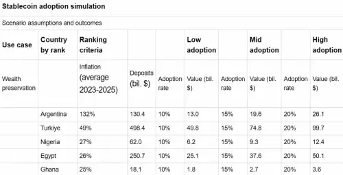 У звіті, опублікованому 22 січня, установа оцінює, що стейблкоїни, прив'язані до долара, можуть становити до 20% банківських депозитів у кількох країнах, що розвиваються , а непогашені суми потенційно можуть досягти 730 мільярдів доларів , порівняно з приблизно 70 мільярдами доларів сьогодні.