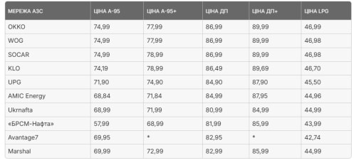 Вартість палива у провідних мережах АЗС на 25 березня. Фото: НафтоРинок