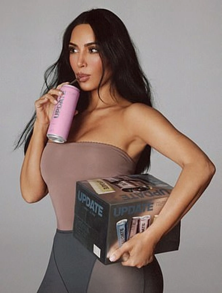 Кім Кардаш’ян опинилася під вогнем критики через ймовірну цифрову обробку зовнішності в рекламних кадрах для її нового бренду енергетиків Update. Напої, що не містять кофеїну та цукру і збагачені параксантином, стануть доступні з 1 березня в 4 000 магазинах Walmart.