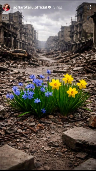 Знаменита артистка України, Софія Ротару, відзначила четверту річницю повномасштабної агресії рф, оприлюднивши емоційний допис. На світлині зображено знищену вулицю, де серед уламків виросли блакитні та жовті квітки.